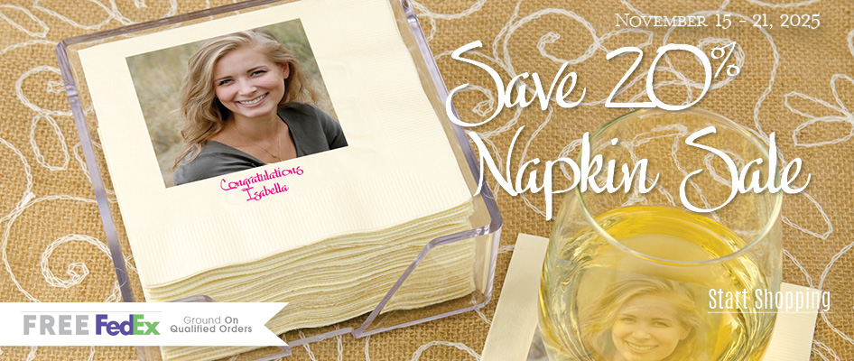 I love these napkins and how fast they send them out! Â Any time someone has us over (with a little notice!), I log on to Gifts in 24 to get a set with their names on it. Â It makes us the perfect guests! Â They are also perfect for a couple shower!Fast Delivery: Order today, we'll ship it tomorrow, for most orders.
