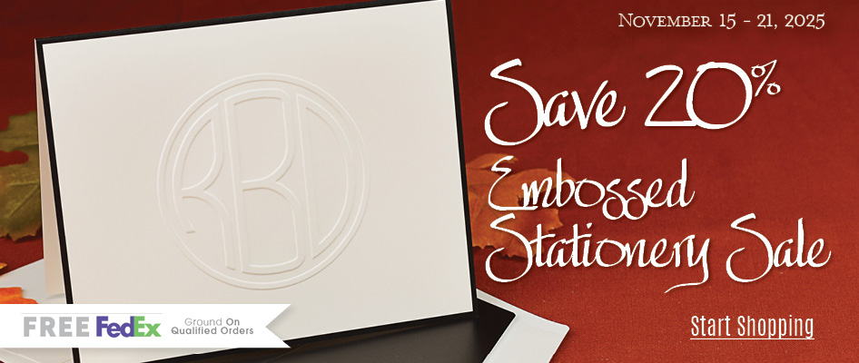 We make every order in-house at our state-of-the-art facility in Aurora, Illinois; pride ourselves on order accuracy; and beautifully package all our goods. Browse our site to learn more about our 10 designer lettering styles, the sophistication of raised ink, and all the various color schemes you can choose from in your custom stationery. Whether you want an elegant monogram or your full name in creative lettering, you're sure to love the results.