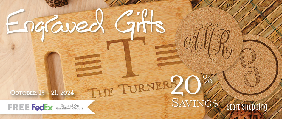 Giftsin24 specializes in fine personalized stationery, notepads, party napkins and other custom engraved gifts - all designed to celebrate your unique style. Showcase your monogram on an engraved cutting board or elegant notecards. Get custom party napkins for a special event - whether it's a wedding, birthday party or golden anniversary. From personalized glass and cork coasters to notepads bearing your name, we design all our products to suit you.