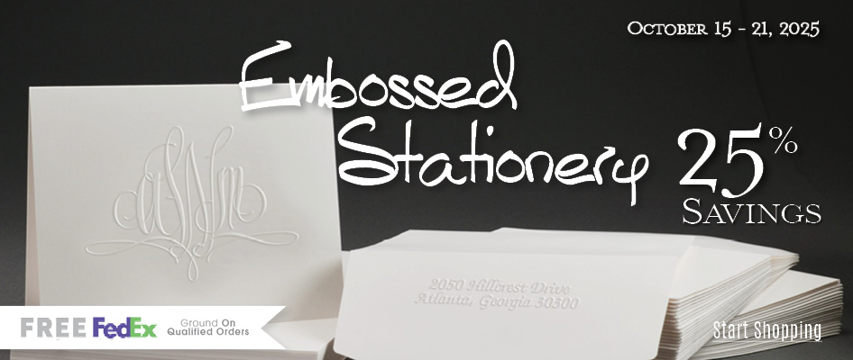 We make every order in-house at our state-of-the-art facility in Aurora, Illinois; pride ourselves on order accuracy; and beautifully package all our goods. Browse our site to learn more about our 10 designer lettering styles, the sophistication of raised ink, and all the various color schemes you can choose from in your custom stationery. Whether you want an elegant monogram or your full name in creative lettering, you're sure to love the results.
