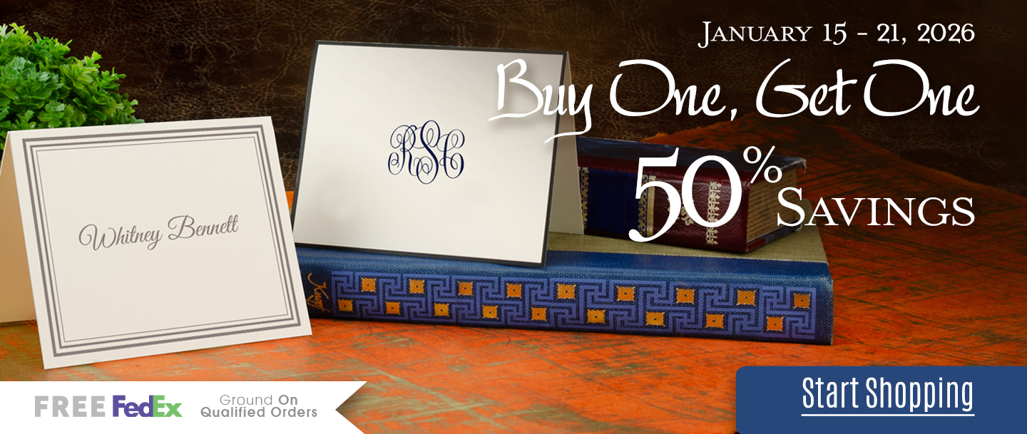 We make every order in-house at our state-of-the-art facility in Aurora, Illinois; pride ourselves on order accuracy; and beautifully package all our goods. Browse our site to learn more about our 10 designer lettering styles, the sophistication of raised ink, and all the various color schemes you can choose from in your custom stationery. Whether you want an elegant monogram or your full name in creative lettering, you're sure to love the results.