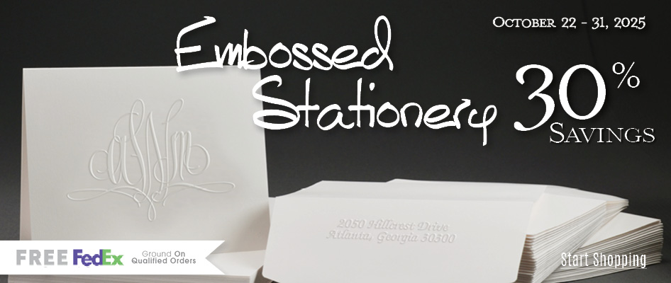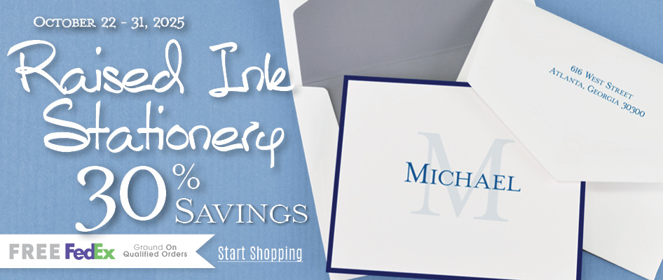 We make every order in-house at our state-of-the-art facility in Aurora, Illinois; pride ourselves on order accuracy; and beautifully package all our goods. Browse our site to learn more about our 10 designer lettering styles, the sophistication of raised ink, and all the various color schemes you can choose from in your custom stationery. Whether you want an elegant monogram or your full name in creative lettering, you're sure to love the results.