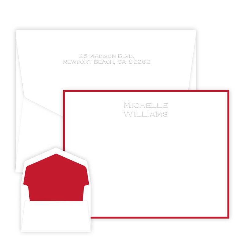 The Canyon Card - Embossed features two lines of embossed personalization at the top of a standard-sized correspondence card.