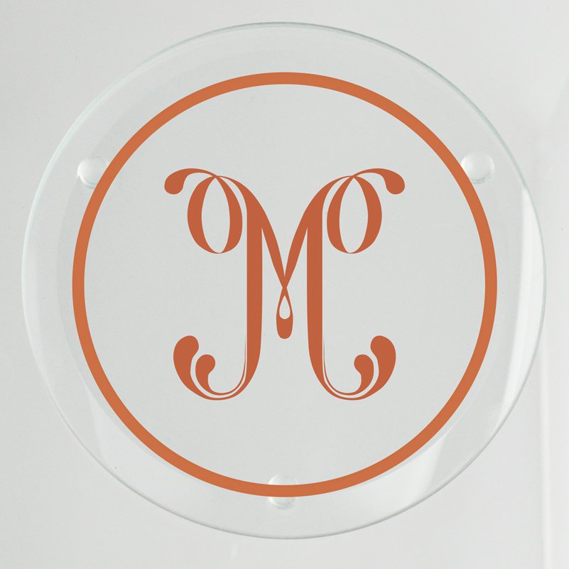 The Rockford Initial Glass Coaster includes a set of four, jade glass coasters (4" round x 3/16" thick). Your single initial, in a choice of 3 exclusive fonts, is displayed within a solid, circular border. We will print your personalization and the border artwork with expert precision.