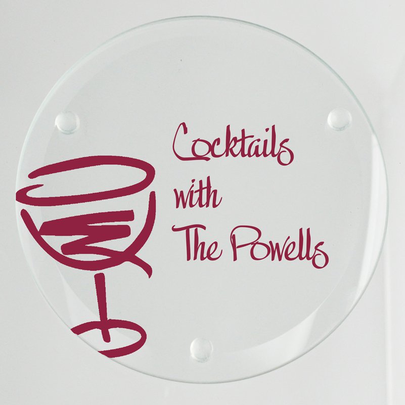 Our Wine Glass Coaster includes a set of four, jade glass coasters (4" round x 3/16" thick). Choose from 4 popular font styles and add up to three lines of text that will be shown to the right of the wine glass artwork. Your personalization is digitally printed with precision.