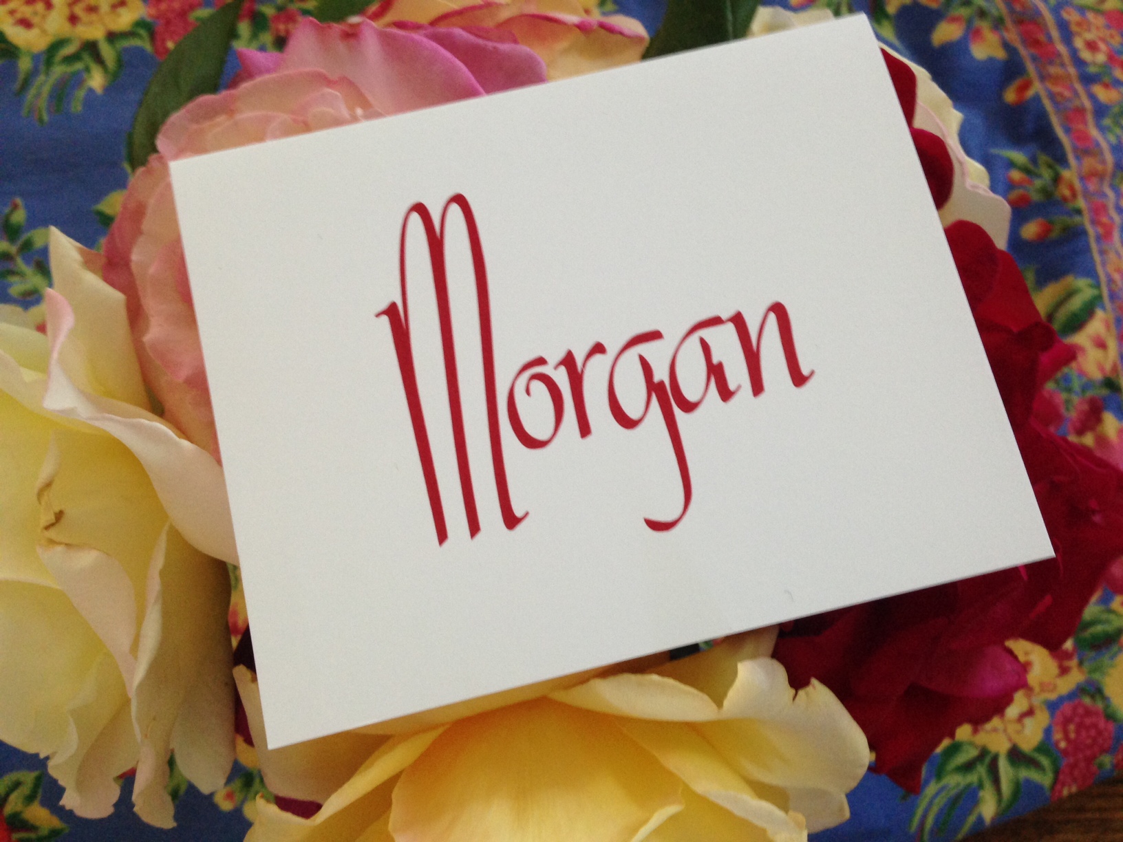 How to use: Write your brief message on the side of the card that shows your name or monogram.